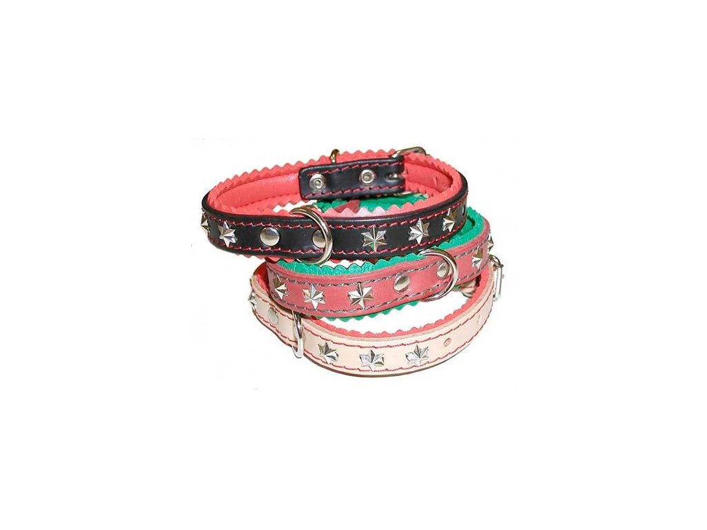 Obojky koženéVyrobené obojky prostřednictvím nejnovějších výrobních technologii s použitím moderních materiálu a širokým výběrem provedení se stanou módním doplňkem. V nabídce můžete najít obojky v různých provedení,délkách s použití plstě, pěnovky i bez.K dispozici je široká paleta variant: od malých plemen až po velká,jednoduché, tvarované, široké i stahovací. Na obojky jsou používány ozdoby které se upevňují na nýty tak aby obojky byly příjemné, hladké na dotek.Obojky se produkuji ve čtyřech barevných odstínech. Použity jsou barvy s vysokou stálostí i při extrémních podmínkách.