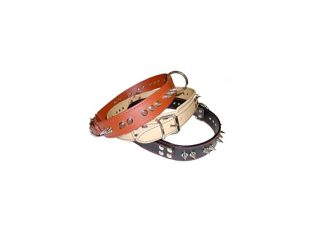 Obojky koženéVyrobené obojky prostřednictvím nejnovějších výrobních technologii s použitím moderních materiálu a širokým výběrem provedení se stanou módním doplňkem. V nabídce můžete najít obojky v různých provedení,délkách s použití plstě, pěnovky i bez.K dispozici je široká paleta variant: od malých plemen až po velká,jednoduché, tvarované, široké i stahovací. Na obojky jsou používány ozdoby které se upevňují na nýty tak aby obojky byly příjemné, hladké na dotek.Obojky se produkuji ve čtyřech barevných odstínech. Použity jsou barvy s vysokou stálostí i při extrémních podmínkách.