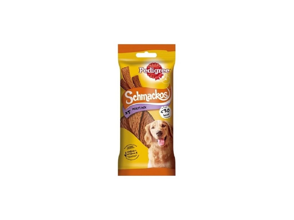 Originální pochoutka pro psa, která má své místo mezi chovately psů již řadu let. Známé masové plátky Schmackos od pedigree s masovou příchutí. Snadno se trhají a jsou tak výbornou odměnou při výcviky nebo hře. Bez přidaných barviv a aroma.