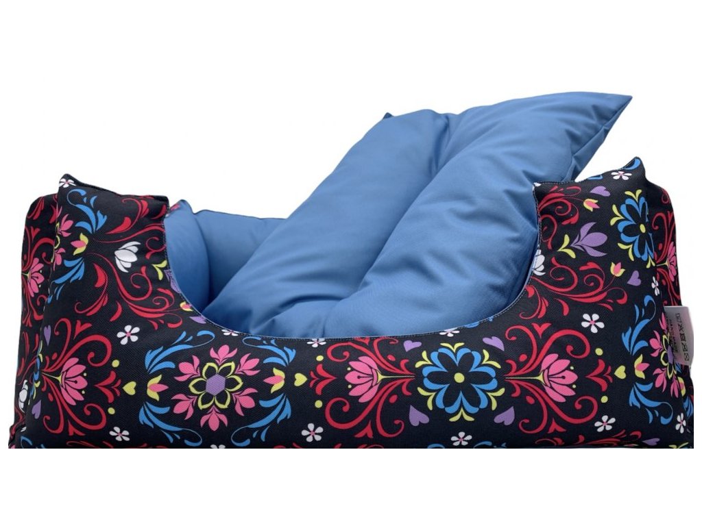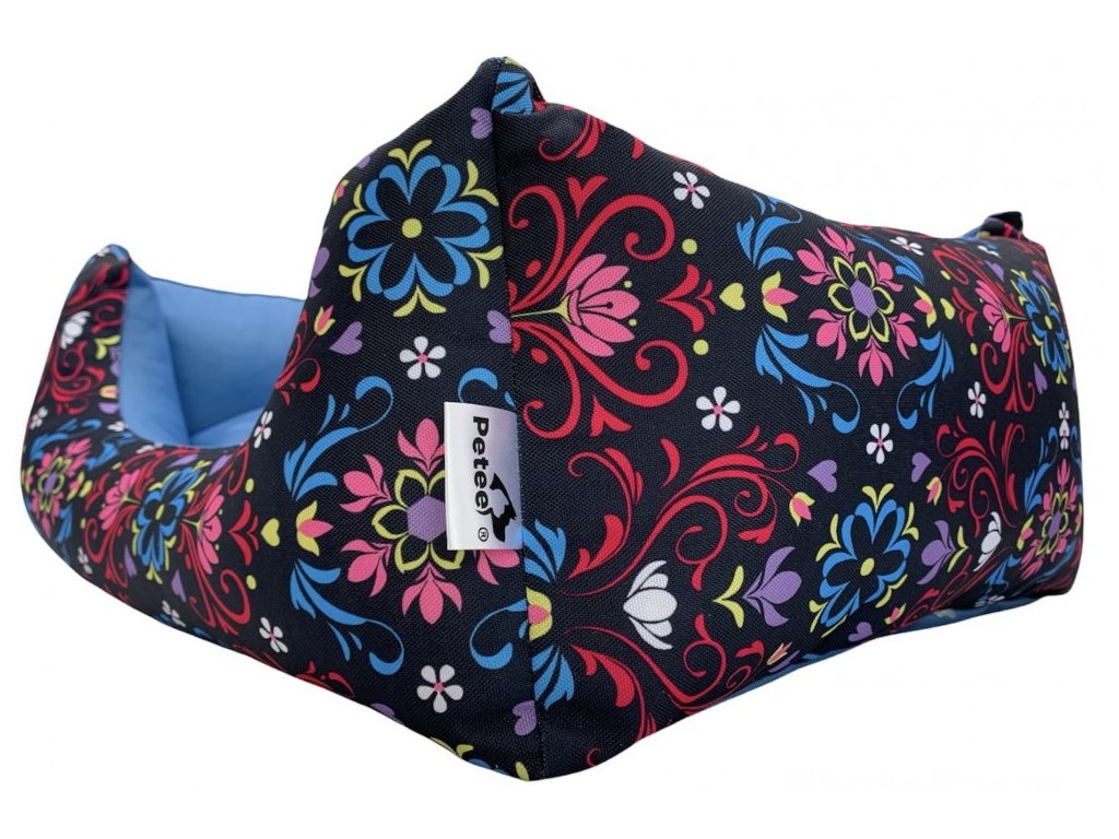 Na zakázku vyráběný krásný a veselý pelíšek Petee Flowee Blue hraje zářivými barvami. Vybrat si můžete z několika velikostí. Je na zakázku vyroben z kvalitní voděodolné látky, na které nelpí chlupy. Pelíšek Flowee Blue má odnímatelný samostatný polštář, který usnadňuje jeho údržbu.