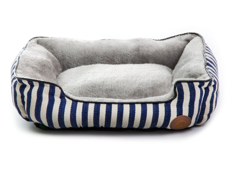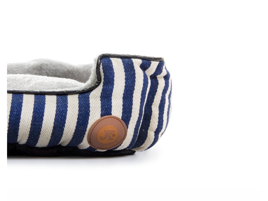 Velmi pohodlný pelíšek Marine v krásném modro-bílém provedení s vnitřním plyšovým polstrováním. Z venkovní strany je pelíšek vyroben z plátěné tkaniny. Ze přední strany má pelíšek snížený vstup, pro pohodlnější vstupování pejska do pelíšku. Pelíšek pro psy je kvalitně prošitý a dlouho vydrží. Ze spodní strany pelíšku je protiskluzová vrstva s malými body, aby pelíšek na hladké podlaze neklouzal. Pelíšek lze prát v ruce.