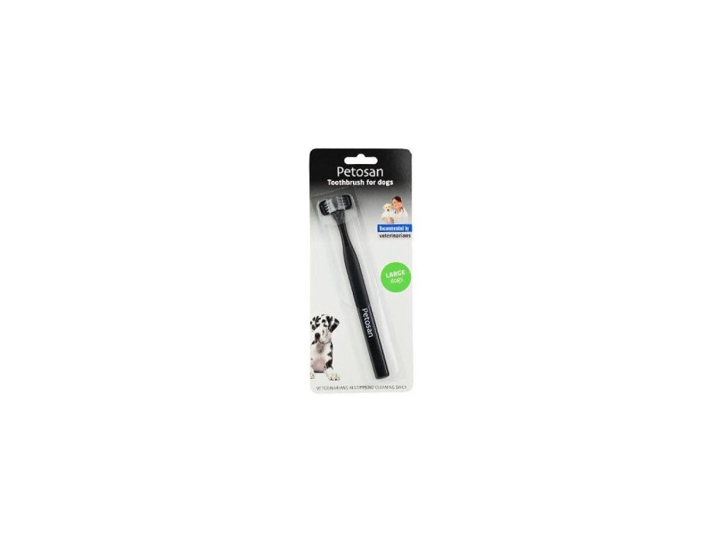Seznamte svého psa se zubním kartáčkem. Petosan dvouhlavý zubní kartáček vám umožní čistit jedním pohybem vnitřní a vnější plochy zubů současně.