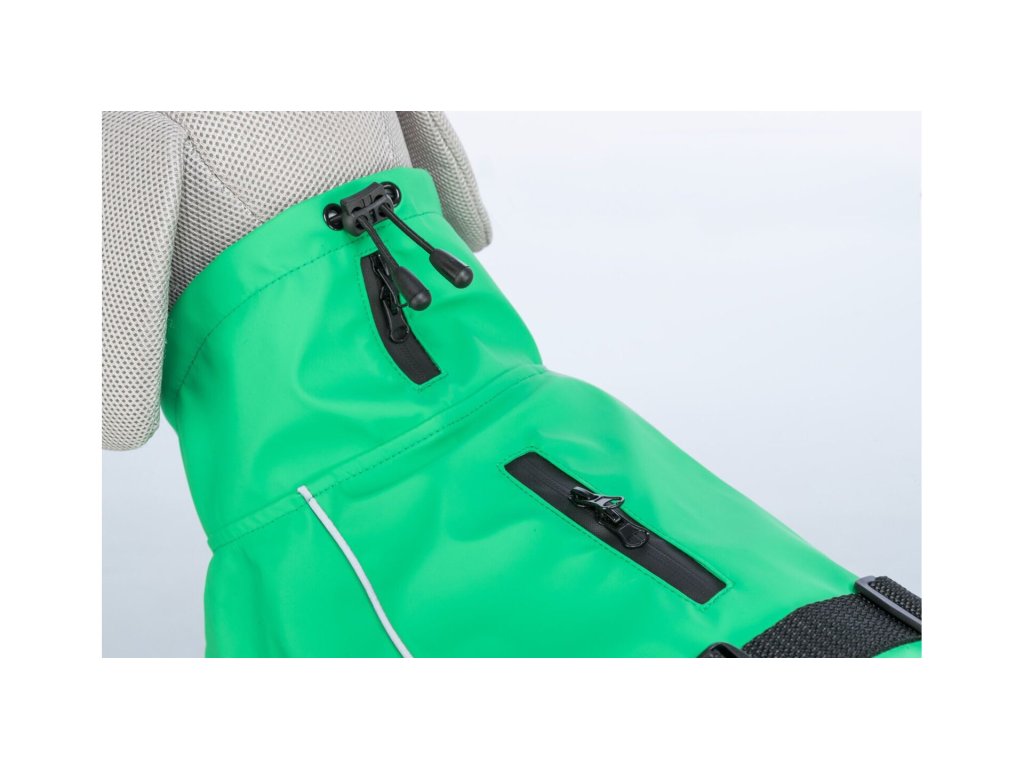Extra vysoký límec se stahovací šňůrkou poskytuje další ochranu před větrem a deštěm. Límec lze snadno nastavit, aby obepínal krk psa bez toho, aby ho to omezovalo.