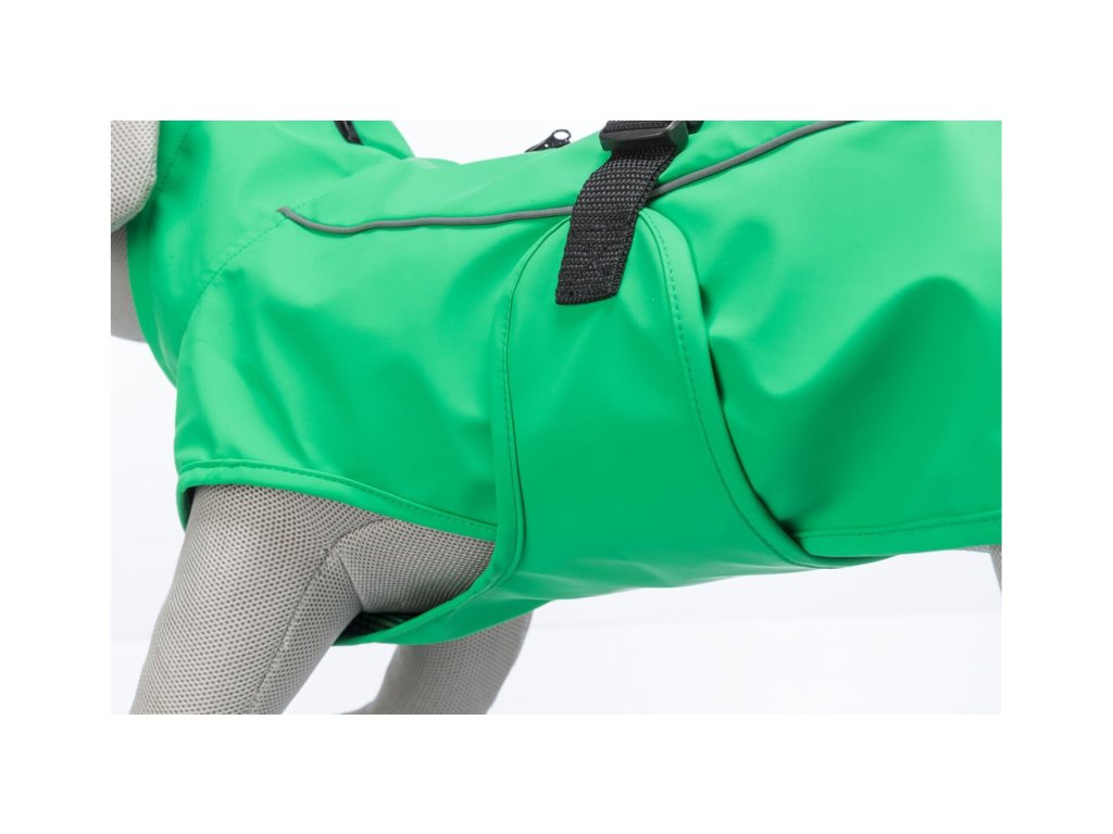Pláštěnka je vybavena dvěma voděodolnými zipy, které jsou strategicky umístěny pro snadné použití s obojkem nebo postrojem.