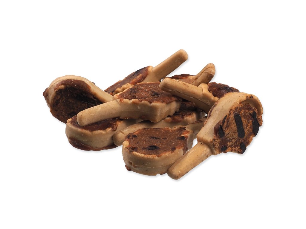 Složení: Žebírka z dentální sušenky 50%, kukuřičný škrob 25%, jehněčí maso 11,5%, rostlinná bílkovina 5%, pšeničná mouka 3%, glycerin 3%, rostlinný olej 2%, sůl 0,4%, sorbát draselný 0,1%.