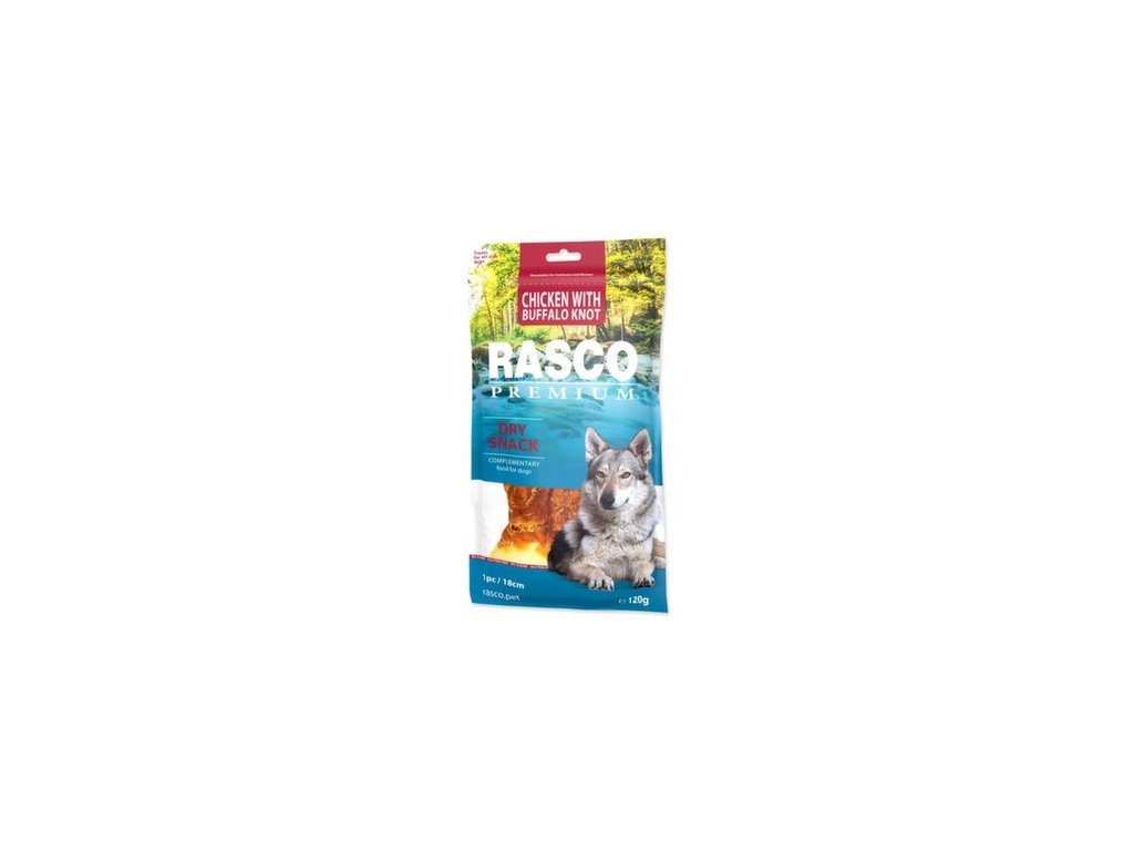 Pochoutka Rasco Premium buvolí kůže obalená kuřecím, uzel 18cm 120g