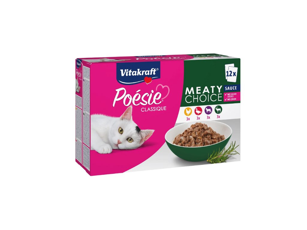 Multipack obsahuje lahodné kapsičky ve šťávě. V balení naleznete čtyři varianty kapsiček: 3x kuřecí, 3x s kachní, 3x jehněčí, 3x zvěřina. Receptura je dokonale přizpůsobena nutričním potřebám koček a neobsahuje cukr ani obiloviny. Bez barviv a konzervačních látek