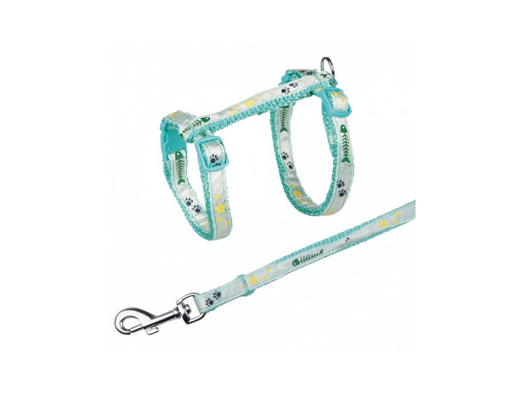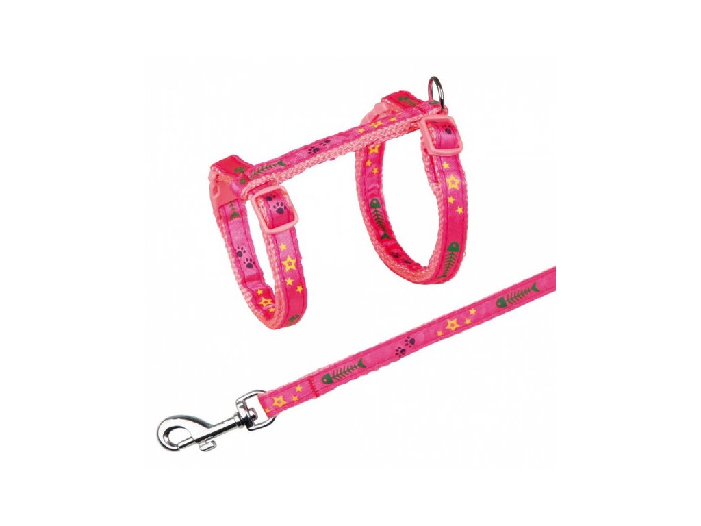 Postroj s vodítkem na kočku pošitý stužkou 22-36cm/10mm 1,2m