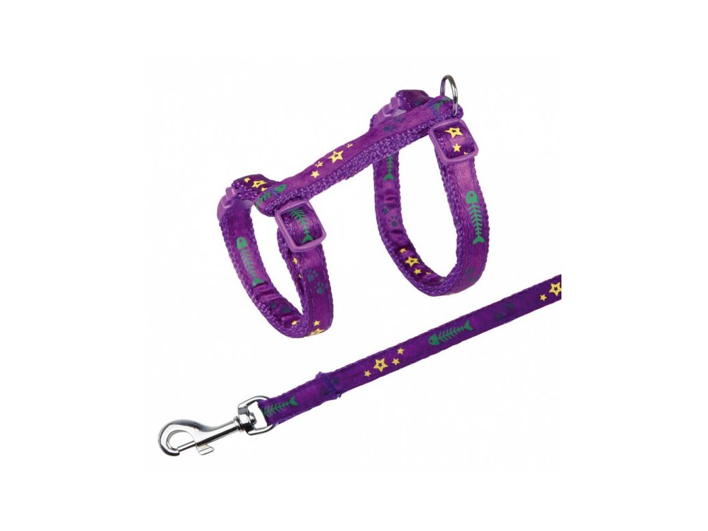 Postroj s vodítkem pro kočku pošitý stužkou.