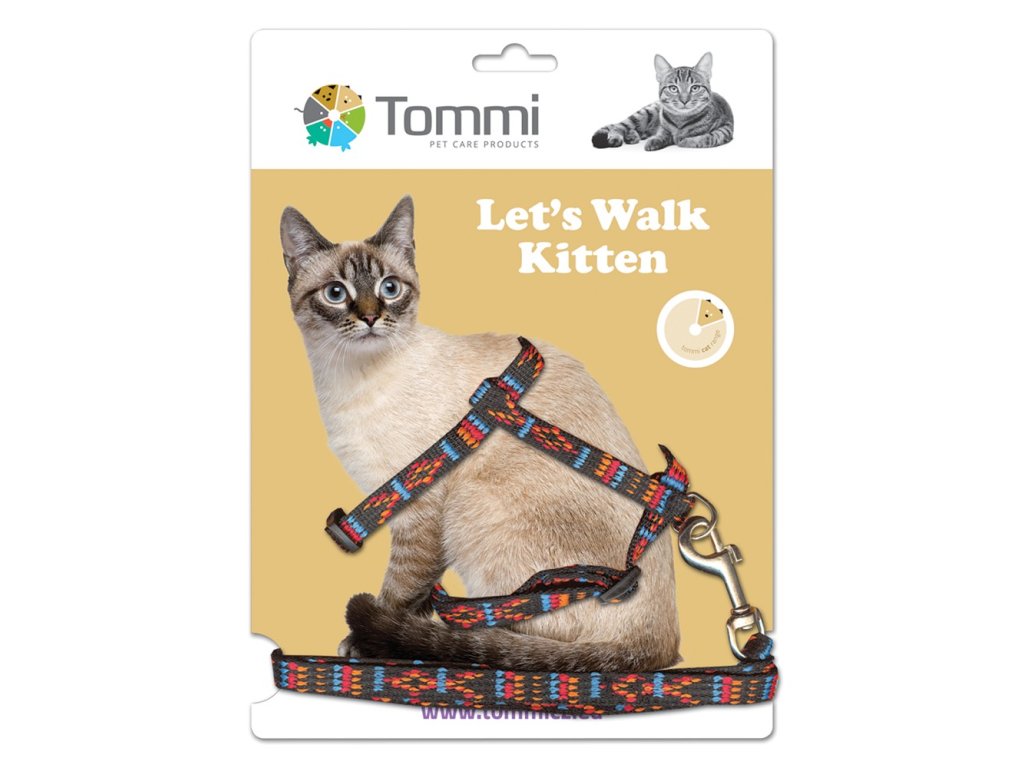Postroj s vodítkem pro koťata.
