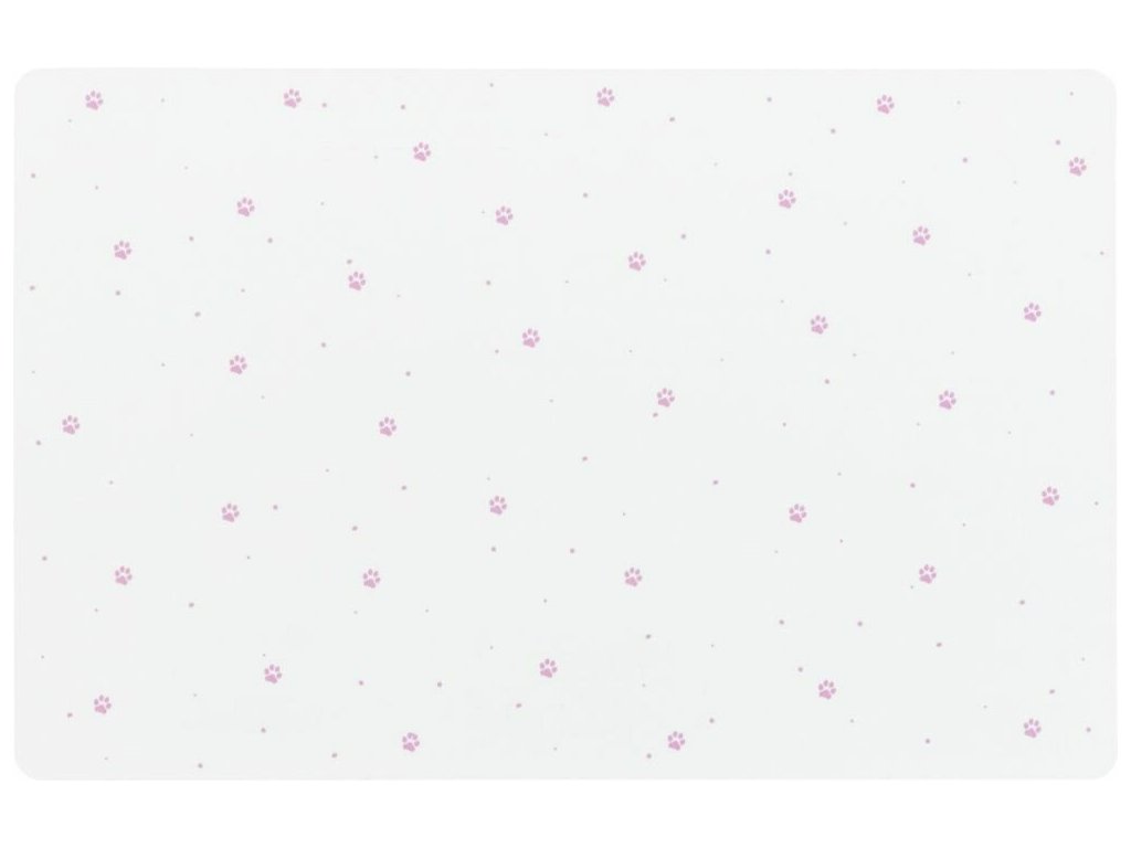 - Prostírání pod misky PAW Print, 44 x 28 cm, bílá / růžové ťapky