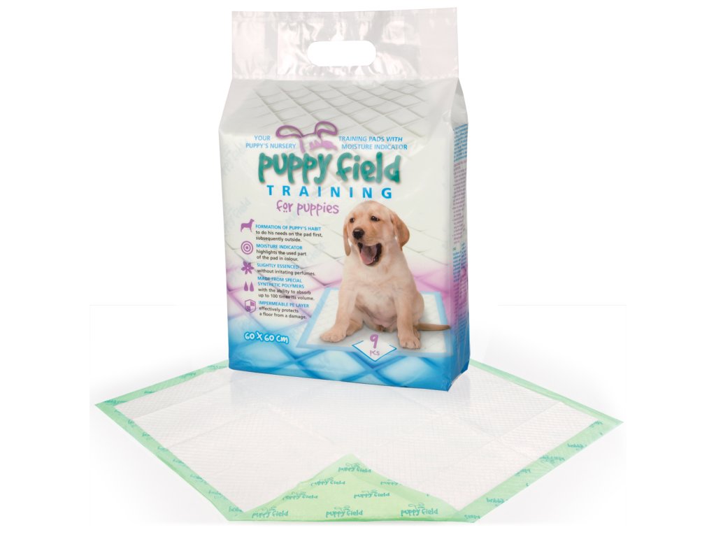 Praktické balení výcvikových ultrasavých podložek s obsahem superabsorbentu, ideální pro chovatele s jedním štěňátkem.