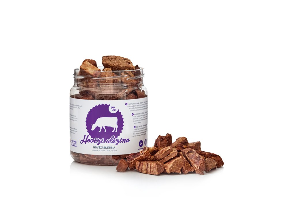 Hovězí slezina je bohatá především na železo a vitamín A. Slezina slouží jako rezervoár krevních buněk, proto obsahuje vysoké množství železa. Je pro psy velmi atraktivní pro svojí vůni a typickou chuť. U barfařů by neměla v jídelníčku chybět. Hovězí bílkovina je vhodná pro většinu alergiků.