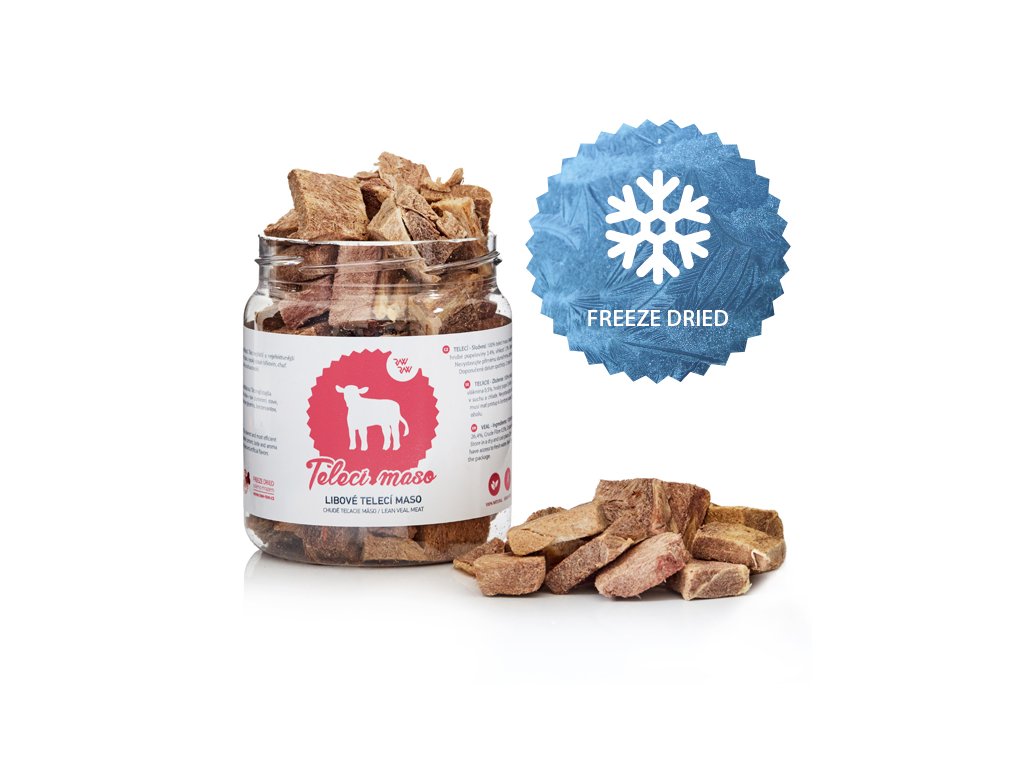 Telecí maso má velmi jemnou, i když méně výraznou, chuť. Telecí maso má vysoký obsah bílkovin, nízký obsah tuku a je lehce stravitelné, proto bývá součástí dětské a dietní stravy. Delikatesa pro vaše mazlíčky. Hovězí bílkovina je vhodná pro většinu alergiků.