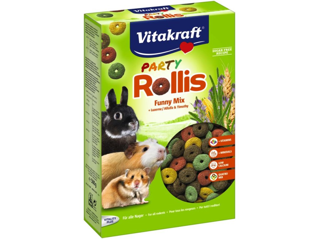Rollis Party – posilňující doplňkové krmivo pro králíky a hlodavce vyrobené z lučních bylin. Tato kolečka jsou obzvláště bohatá na vlákninu a vitamín C a obsahují důležité minerály a stopové prvky.