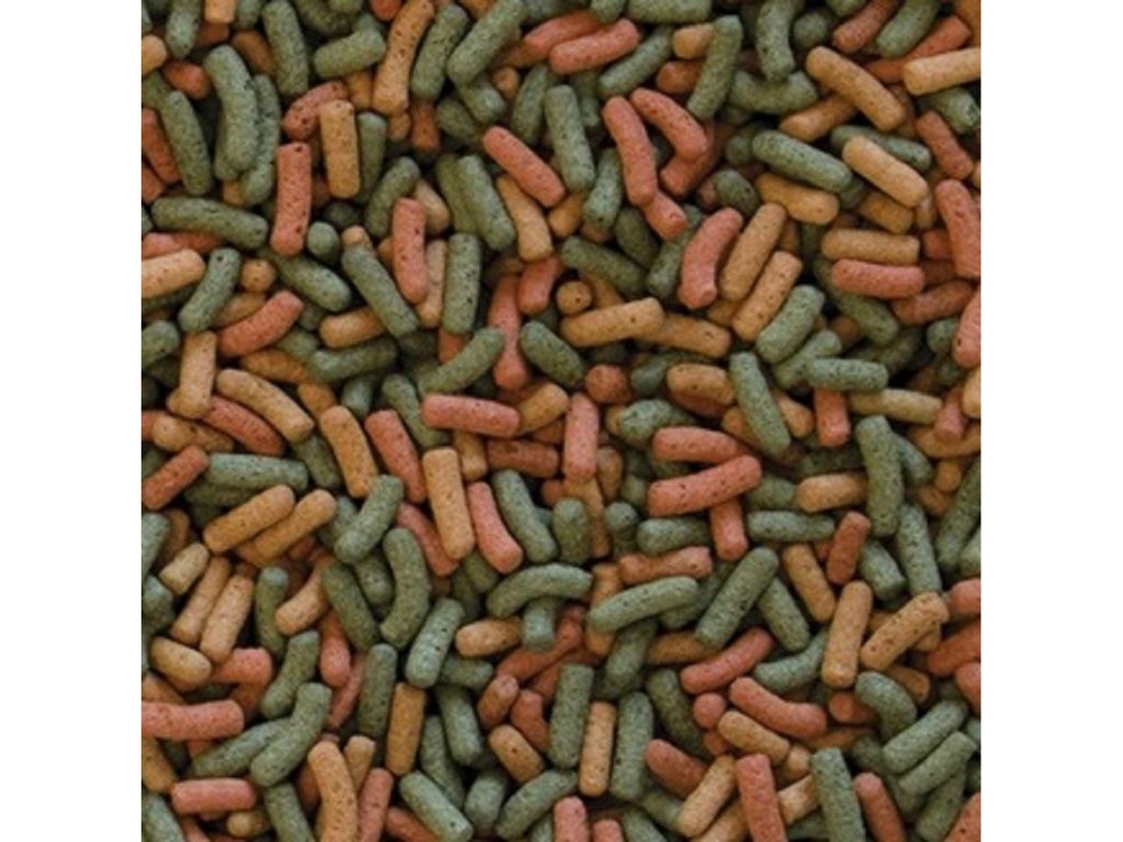 Složení: ryby a rybí výrobky, výrobky rostlinného původu, rostlinné bílkovinné výtažky, měkkýši a korýši (mj. Gammarus pulex 4,8%), obilí, řasy, droždí, oleje a tuky, krmné směsi minerálního původu (včetně zeolitu 1%)