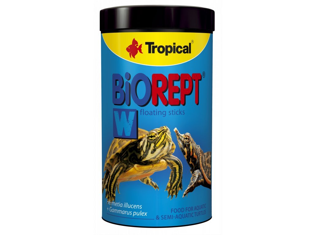 Speciálně zvolená výživných složek zajišťuje požadavky želv na výživu. Výborná chuť tyčinek způsobuje, že je zvířata mají velmi rády. Vhodně zvolena kombinace vitamínů a mikročástic zaručuje správný vývoj kosti a krunýře želv, chrání proti deformacím a dalším závažným zdravotním problémům. Želvy, které se pravidelně krmí tyčinkami Biorept W se rovnoměrně vyvíjejí a mají výbornou kondici. Pro vodní a bahenní želvy doporučujeme také další krmiva značky Tropical – Reptotabin a Gammarus.