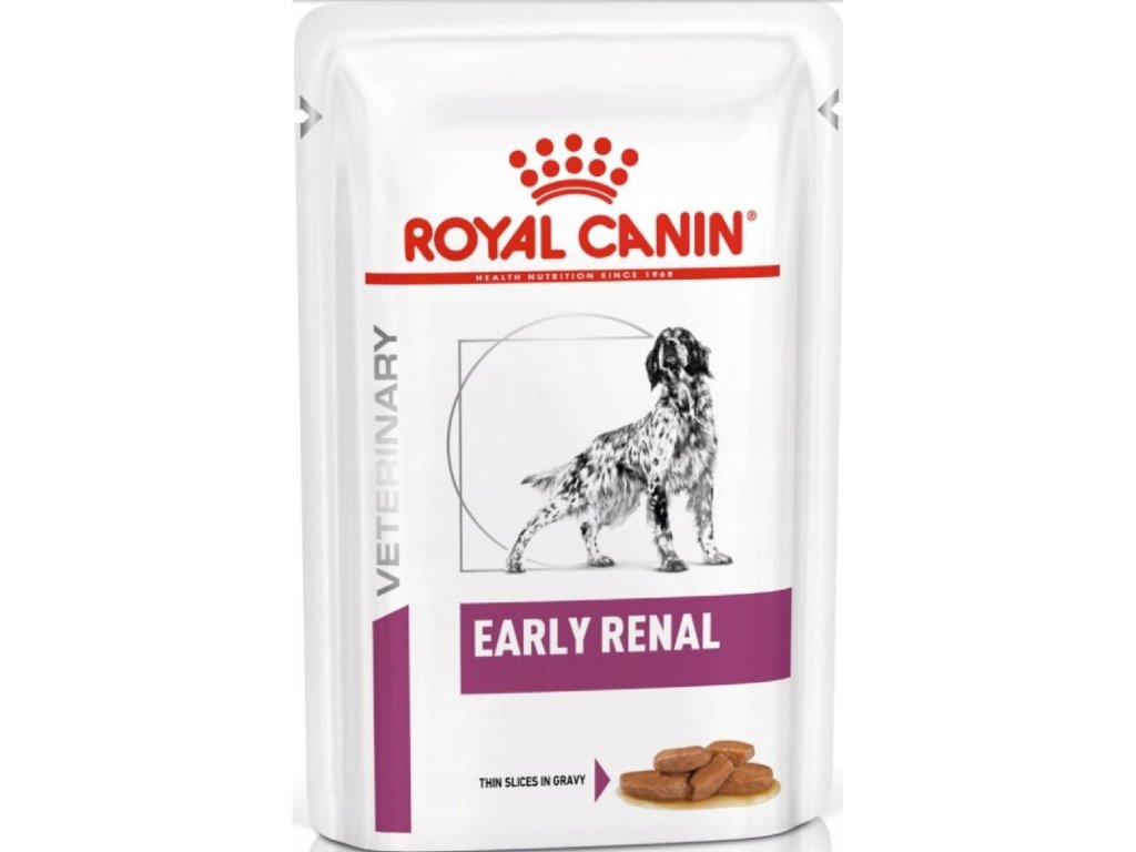 Kompletní dietní krmivo pro psy Royal Canin Renal ve formě tenkých plátků v lahodné šťávě. Receptura speciálně vyvinutá pro podporu funkce ledvin v případě počátečního stádia chronické ledvinové nedostatečnosti. Kapsička je vhodná zejména díky nízkému obsahu fosforu a vysokému obsahu kvalitních proteinů.