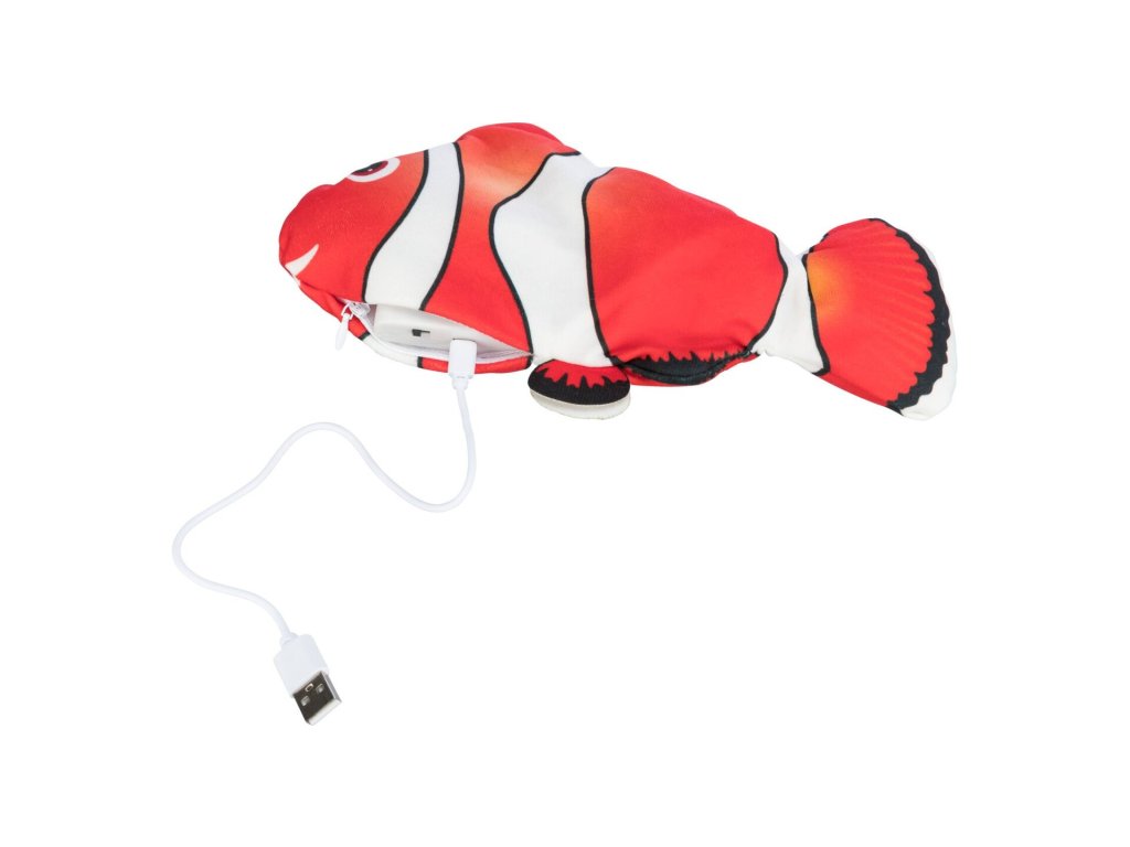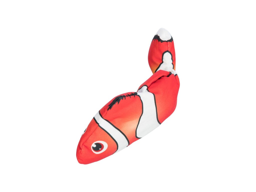 Ryba "NEMO" jako živá, mrskající se, s catnipem, látka, 26 cm (RP 0,90 Kč)