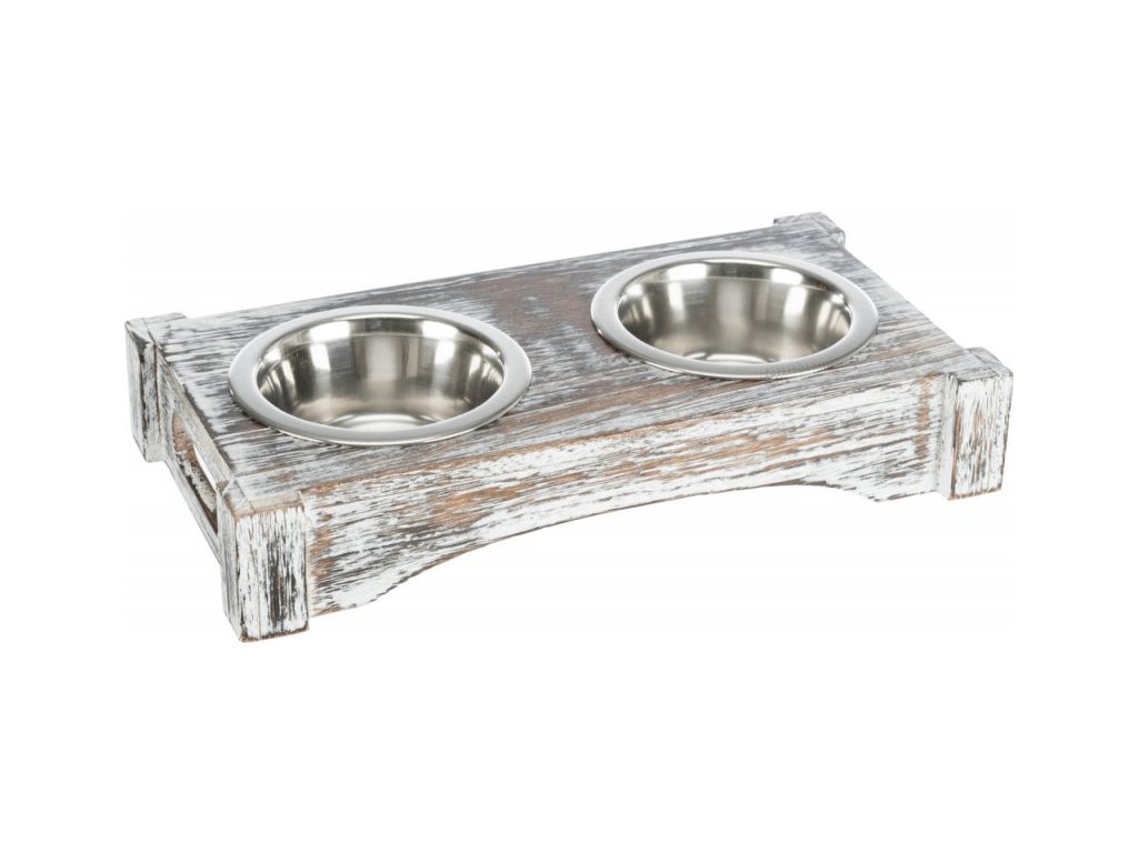 Sada nerez misek v dřevě. pod 2x0,75l/15cm, 42x10x22cm, bílá