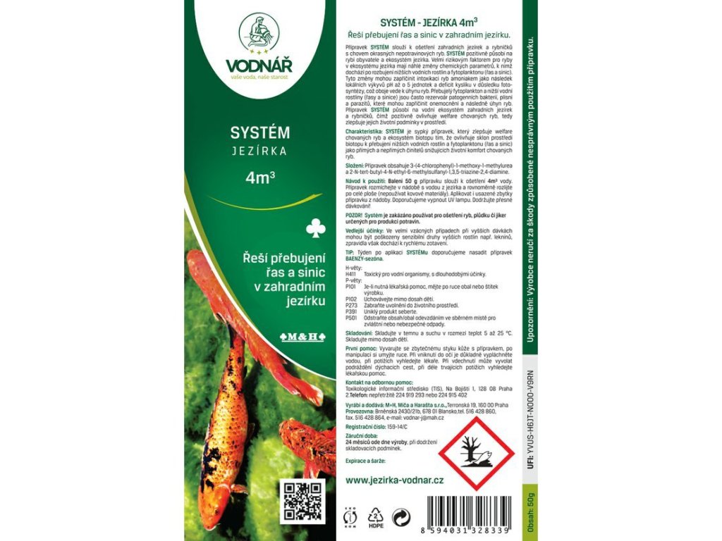 Na řasy systém pro jezírko 4m3. Jedná se o sypký algicidní přípravek, sloužící k dlouhodobé prevenci i razantnímu zákroku proti vláknité řase i jednobuněčné řase.