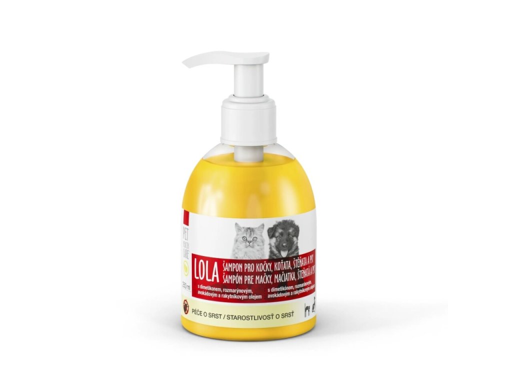 svým účinkem přispívá k snížení rizika výskytu parazitů v srsti a dodává šamponu příjemnou vůni. Avokádový a rakytníkový olej srst vyživují, chrání a působí antistaticky při česání dlouhé srsti. Dodává srsti pevnost a lesk, napomáhá regeneraci kůže. LOLA – šampon je vhodný pro pravidelnou péči o srst a kůži všech plemen koček a psů. Po použití je srst hebká, lesklá a dobře se rozčesává. Díky svému složení je šampon maximálně šetrný vůči pokožce a srsti.