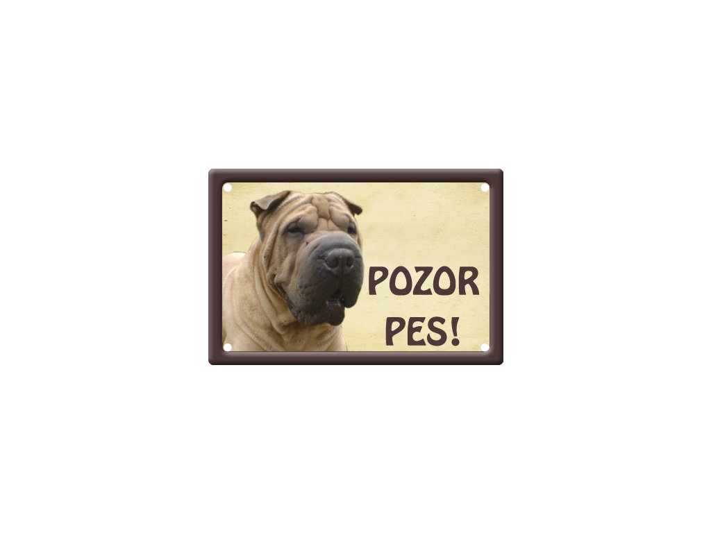 Plechová psí cedulka pro venkovní i vnitřní použití v rozměru 150x100mm, v rozích 4 díry pro uchycení, prolisovaný zdobný okraj tabulky, potištěný plech.