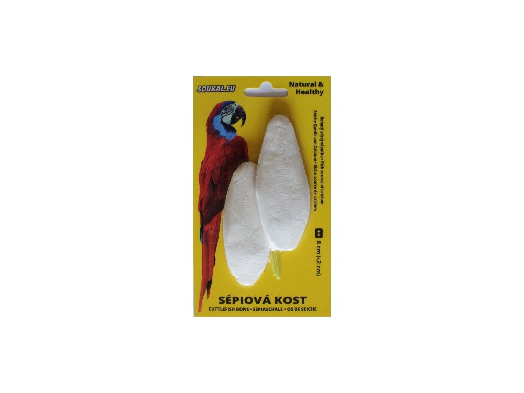 Pravá sepiová kost broušená se závěsem formou drátku - přírodní zdroj minerálních látek - 100% natural.Doplňkové krmivo pro exoty a papoušky, které dodává organismu v přírodní formě kalcium, ostatní minerální látky a stopové prvky potřebné pro udržení dobré kondice Vašeho miláčka.Podávejte bez omezení.Pomocí úchytu zavěste do klece a po spotřebování doplňte další.Jakostní znaky: kalcium min. 25%Balení: 1 ks na kartě
