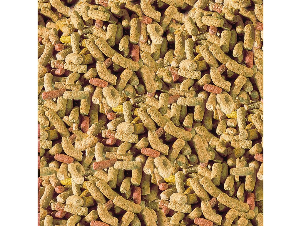 Složení: kukuřičný škrob, pšeničný lepek, rybí moučka, pšeničná mouka, pivní kvasnice, vaječný prášek, rybí tuk, gamarusi, slávka zelenoústá, vojtěška, byliny, kopřivy, petržel, mořské řasy, paprika, spirulina, špenát, karoten, česnek.