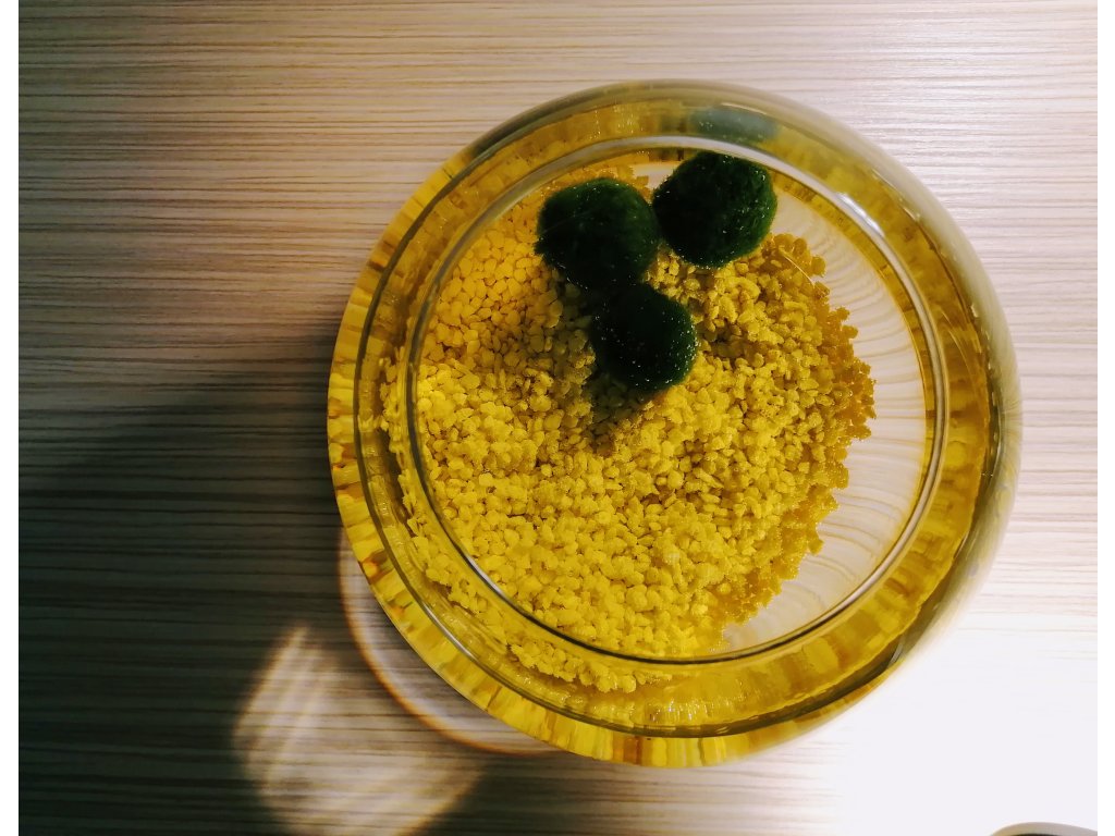 Údržba: řasokoule je vhodné jednou za dva týdny propláchnout, aby se zbavily nahromaděných nečistot a zároveň ji můžete převalit a lehce pomačkat tak, ať si zachová kulovitý tvar