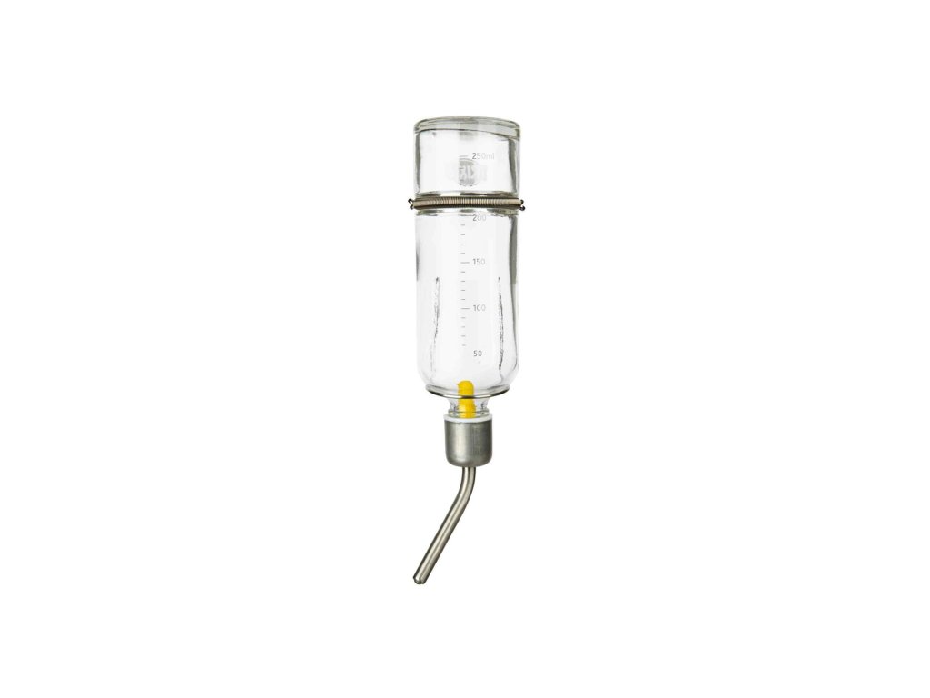 Skleněná napáječka s kovovým pítkem pro morčata 250 ml