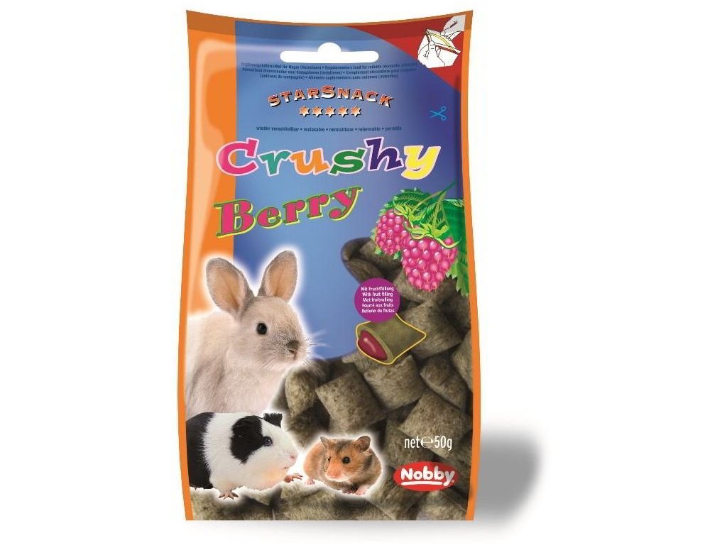 Lahodné doplňkové krmivo pro králíky, morčata a další hlodavce. Křupavé polštářky s ovocnou náplní.