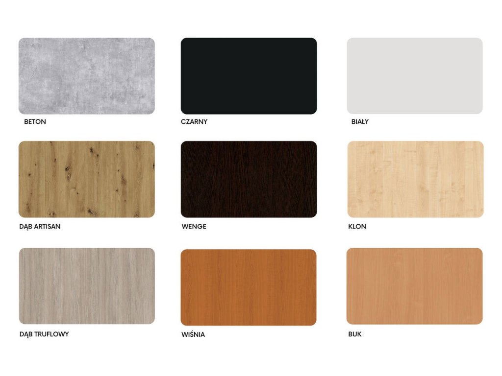 Nabízíme je v deseti barvách: javor, buk, třešeň, lanýž, ořech, wenge, bílá, beton, řemeslný dub a černá. Vzory talířů najdete v šabloně v galerii produktu.