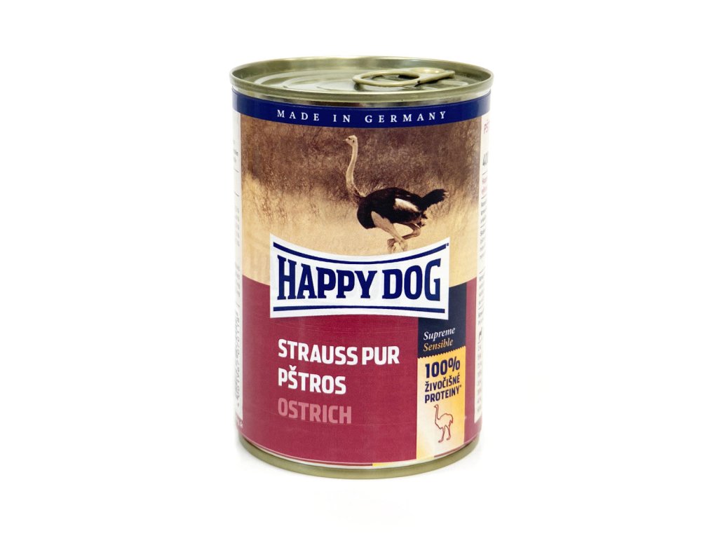 100% Pštros - kompletní krmivo pro psy. SUPREME SENSIBLE masová konzerva bez rostlinného podílu, s přídavkem vitaminů.