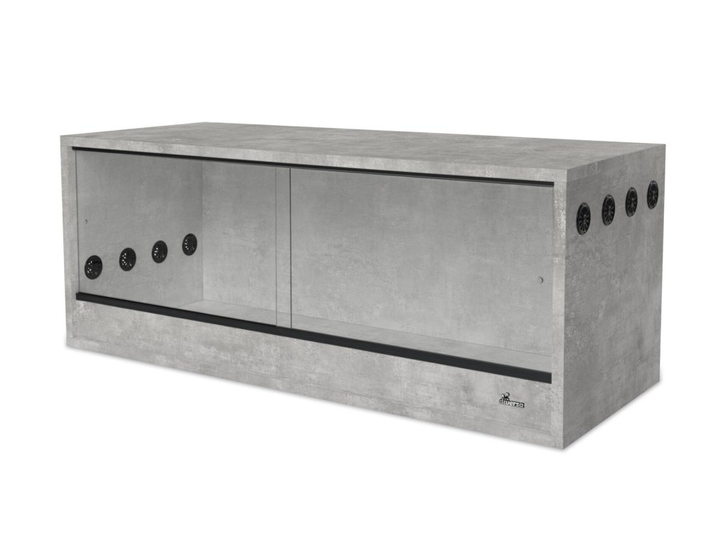 Terárium z nábytkových desek. Terárium pro vlastní montáž, vybavené gravitačním větráním nahoru a dolů a dvojicí posuvných skleněných dvířek.