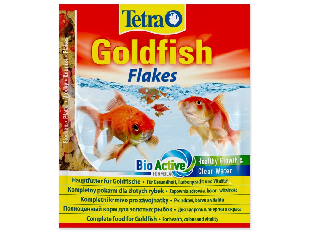 Kompletní krmivo pro zlaté rybky. Obzvlášť lehce stravitelná směs vloček s optimalizovaným složením komponentů. Obsahuje stabilní množství vitamínu C. Krmný návod: krmte několikrát denně malé množství. Složení: ryby a výrobky z ryb, obiloviny, sušené krmné kvasnice, vedlejší výrobky rostlinného původu, měkkýši a korýši, oleje a tuky, řasy, cukr, lecitin. Jakostní znaky: hrubé proteiny 42%, vlhkost 6,5%, hrubé oleje a tuky 8%, hrubé popeloviny 10,5%, hrubá vláknina 2%, vitamín A 29100 m.j./ kg, vitamín D3 1820 m.j./ kg, vitamín E (alfatokoferol) 120 mg / kg, L-askorbyl-2-polyfosforečnan (stabilizovaný vitamín C) 265 mg / kg.