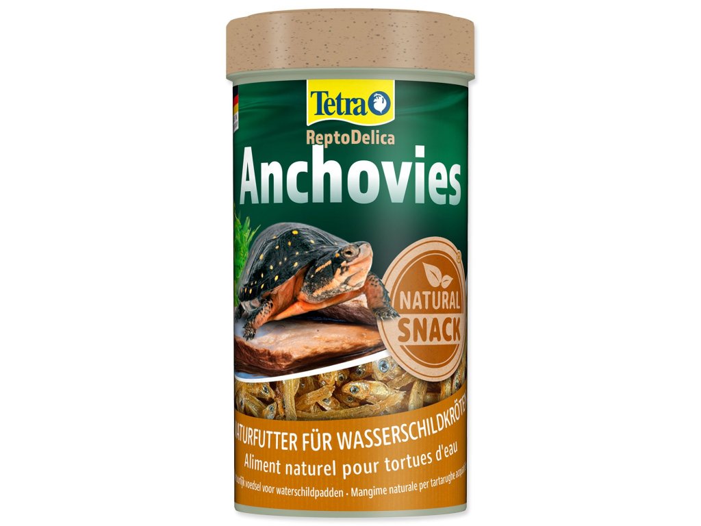 Doplňkové krmivo pro vodní želvy. Krmivo pro vodní želvy se skládá z celých ančoviček pro přirozenou výživu. Ančovičky jsou malé, sušené ryby, které jsou ideální dárek pro vodní želvy. Jsou mimořádně bohatým zdrojem bílkovin pro zdravý růst svalů a tělesný růst. Proces jemného sušení zajistí nejlepší kvalitu a nejlepší chuť. Bohaté na přírodní atraktanty. Krmný návod: podávejte několikrát týdně jako doplněk k hlavnímu krmivu. Mělo by být podáváno jako doplněk ke krmivu Tetra ReptoMin. Složení: 100% ančovičky. Jakostní znaky: hrubé proteiny 68%, vlhkost 10%, hrubé oleje a tuky 8%, hrubá vláknina 2%.