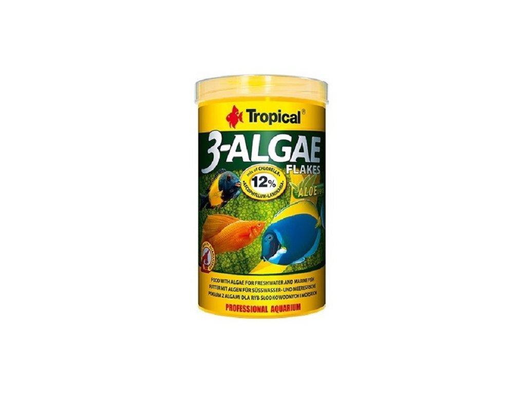 Ve složení 3-ALGAE FLAKES jsou obsaženy tři řasy: chlorella (Chlorella vulgaris) a dále Ascophyllum nodosum i Laminaria digitata, definovány jako řasy kelp. Nenasycené mastné kyseliny, bílkoviny (bohaté na exogenní aminokyseliny), vitamíny, které jsou ve chlorelle obsaženy, a také mikro a makro elementy z řas kelp (v tom jód, chróm, selen a železo), zaručují rybám dokonalou kondici, intenzivní růst a vitalitu. Ryby při pravidelném krmení vločkami 3-ALGAE FLAKES dostávají velkou dávku chlorofylu – zeleného barviva, jehož koncentrovaným zdrojem je chlorella. Chlorofyl omezuje rozvoj nežádoucích bakterií v zažívacím traktu, předchází zánětlivým stavům a společně se zeolitem podporuje odstranění toxinů z organismu ryb. Výtažek z aloe posiluje imunitní systém ryb a také blahodárně působí na normální bakteriální flóru v zažívacím traktu. S ohledem na své posilovací vlastnosti je krmivo 3-ALGAE FLAKES doporučeno pro výživu ryb během karantény, aklimatizace a rekonvalescence.