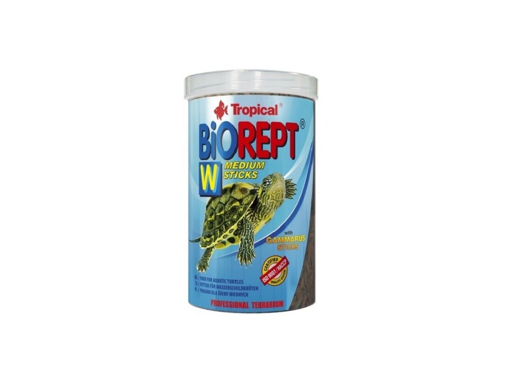 Speciálně zvolená výživných složek zajišťuje požadavky želv na výživu. Výborná chuť tyčinek způsobuje, že je zvířata mají velmi rády. Vhodně zvolena kombinace vitamínů a mikročástic zaručuje správný vývoj kosti a krunýře želv, chrání proti deformacím a dalším závažným zdravotním problémům. Želvy, které se pravidelně krmí tyčinkami Biorept W se rovnoměrně vyvíjejí a mají výbornou kondici. Pro vodní a bahenní želvy doporučujeme také další krmiva značky Tropical – Reptotabin a Gammarus.