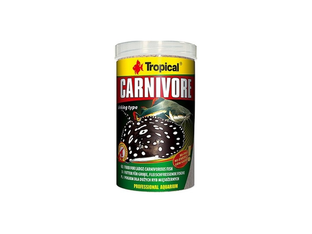 Zvolna klesající granulát s vysokým obsahem bílkovin pro ryby přijímající potravu u dna. Vysoká úroveň lehce stravitelné bílkoviny uspokojí požadavky jak sumců, tak velmi vybíravých rejnoků, hadohlavců a pod. Carnivore je výborným doplňkem stravy všežravých ryb a zajímavou nabídkou pro větší druhy cichlid, které přijímají potravu u dna akvária. Snížený obsah škrobu chrání masožravé ryby proti ztučnění vnitřních orgánů. Používaná echnologie HTST k výrobě granulátu, zajišťuje velmi vysokou vstřebatelnost výživných složek a biologickou bezpečnost výrobku. Nevídaná hydrostabilita způsobuje, že granulát neobvykle dlouho udržuje ve vodě svojí strukturu, nešpiní ji a neuvolňuje do vody cenné živiny. Přítomný v krmivu beta-glukan přirozeným způsobem podporuje činnost imunitního systému.