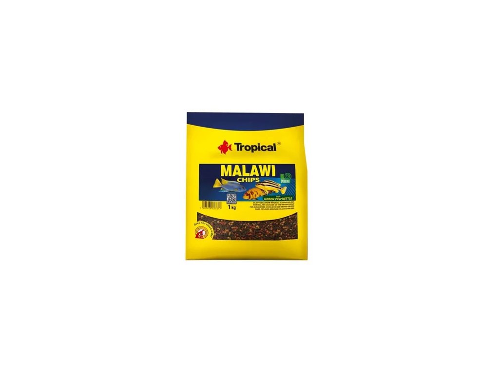 MALAWI CHIPS je krmivo bohaté na živiny, ve formě malých, pomalu klesajících chipsů určených pro cichlidy z jezera Malawi skupiny Mbuna a jiné všežravé a býložravé cichlidy. Bohatá receptura zajišťuje rybám vynikající zdraví a zářivé barvy. Velikost a tvar chipsů odpovídají tvaru cichlidí tlamy, což podporuje aktivní příjem potravy a přirozené žvýkání. Vlákna a kopřiva regulují trávicí procesy.