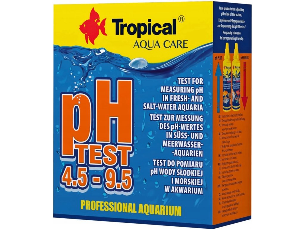 Test pH 4.5–9.5 slouží ke stanovení hodnoty pH ve sladké i mořské vodě v rozmezí 4,5 až 9,5, přičemž odečet probíhá v krocích po 0,5 pH. Díky širokému měřicímu rozsahu je vhodný i pro akvária s extrémnějšími podmínkami, které jsou typické pro specifické biotopy napodobované v domácím chovu.