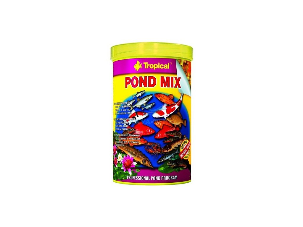 Jedinečná směs krmiv, která se skládá z: chutných vloček, tyčinek plovoucích po povrchu vody, klesajících granulí, tablet a sušených blešivců a krevet. Pond Mix je určený ke každodennímu krmení všech ryb chovaných v okrasných zahradních jezírkách. Použití v této směsi tak různých krmiv umožňuje uspokojit požadavky ryb na potravu a poskytuje jim způsob pojídání sblížený s přirozeným. Složky Pond Mix jsou dostupné pro ryby, které se krmí u hladiny vody, ve vodě i u dna nádrže. Pestrost chutí použitých ve směsi krmiv Pond Mix zjišťuje rybám skutečnou hostinu a dává jim živiny, které jsou pro jejich život nezbytné. Ryby, které jsou pravidelně krmené krmivem Pond Mix jsou zdravé, plné života a krásně zbarvené.