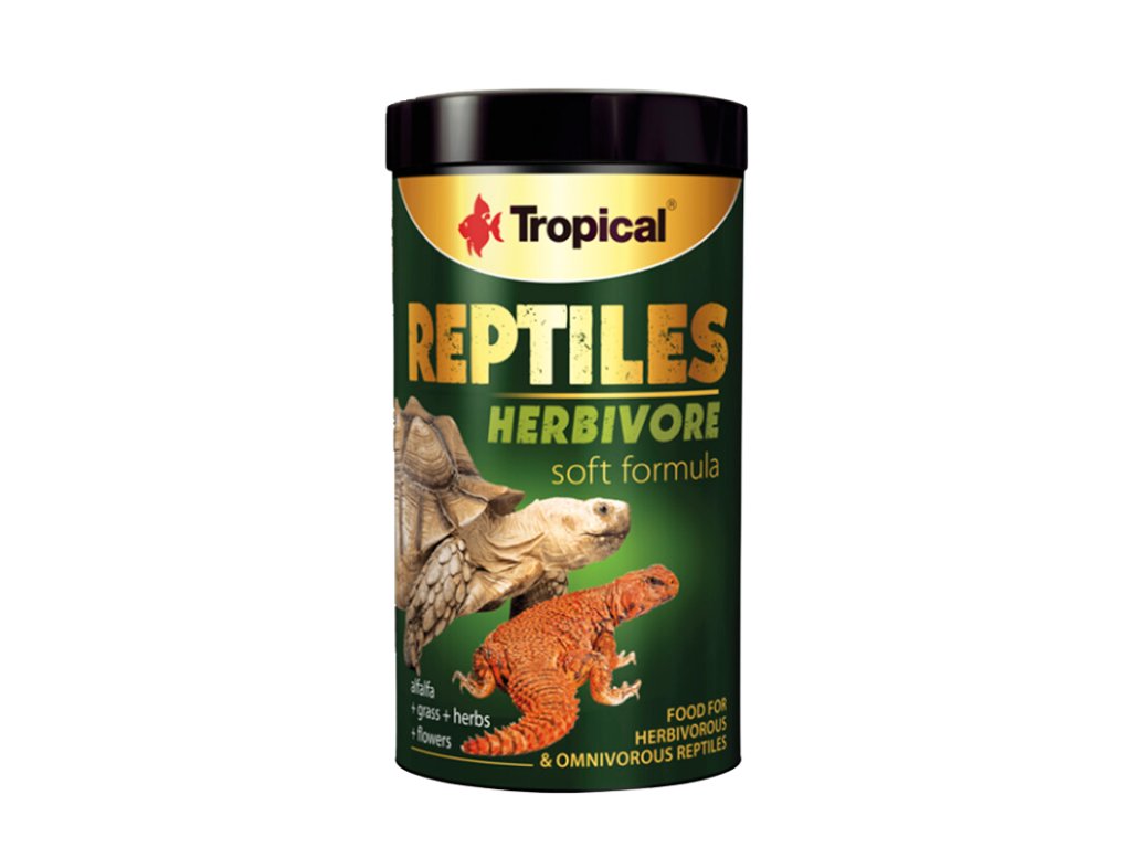 Mnohosložkové krmivo s dodatkem petrželové natě, květů měsíčku lékařského, ostružinového listí a listí pampelišky určené pro každodenní krmení agamy vousaté, trnorepy, leguána zeleného a suchozemských želv (zelených, středozemních, vroubených, čtyřprstých, ostruhatých, leopardích).