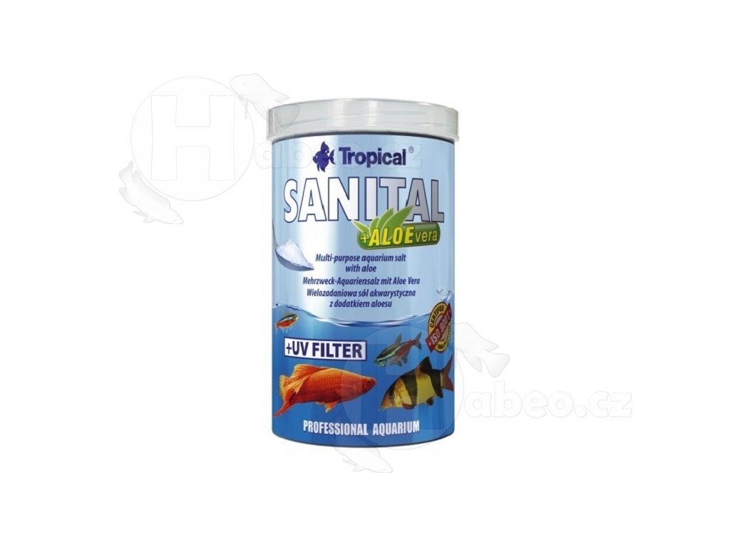 SANITAL je akvaristická sůl speciálně připravená pro profilaktické použití a dále na přípravu koupelí pro ryby po převozu i během celého období aklimatizace. Činné složky přípravku usnadňují rekonvalescenci a vyrovnávání iontových poruch v organizmu ryb, které se objevují následkem působení škodlivých faktorů prostředí. Doplněk aloe urychluje regeneraci poškozené pokožky a aktivuje imunitní systém ryb. Tekutý modrý UV filtr, který je v SANITALU obsažen způsobuje, že akvarijní voda získává blankytnou barvu, díky čemu se rozvoj řas v nádrží značně zmenší. Přípravek je třeba používat při každé výměně vody. SANITAL je bezpečný prostředek pro životní prostředí, ale zároven i pro všechny obyvatelé akvária.
