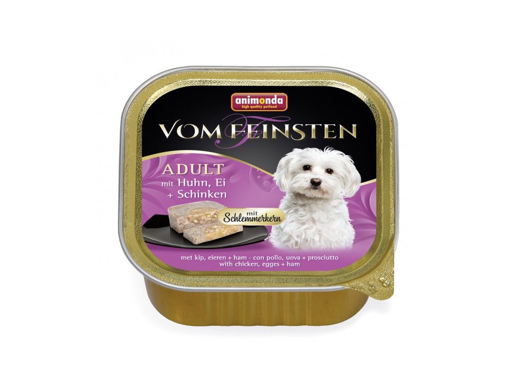 Vysoce kvalitní paštika V.Feinsten CORE s kuřecím masem, vejcem a šunkou pro dospělé psy.