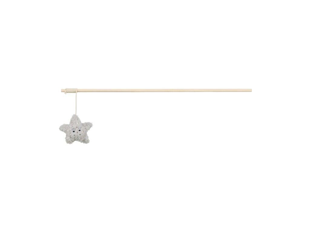 Vánoční hrací prut s hvězdičkou a catnipem, 48 cm, plyš/dřevo, šedá