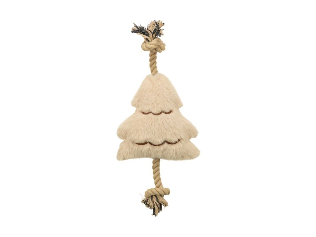 Vánoční stromek na laně, bez zvuku, 38 cm, plyš/bavlněné lano, béžová