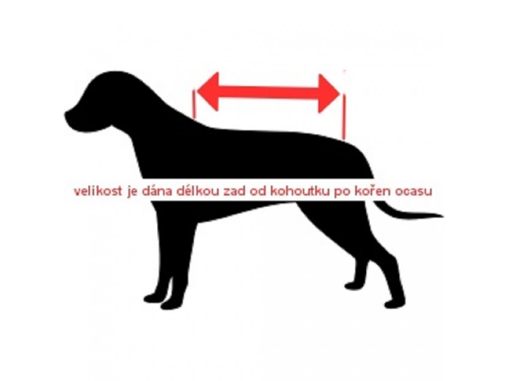 Velikost: Oblečky jsou univerzální a nejsou určeny pro konkrétní plemeno ani pohlaví. Pro zjištění správné míry je třeba psa změřit. Měří se od kohoutku (prostor mezi lopatkami psa), po kořen ocasu.