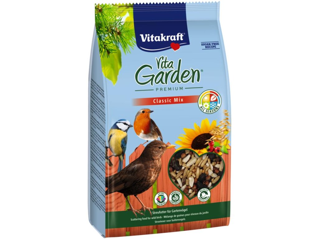 Ptačí zob Vita Garden je cenným doplňkem k přírodní nabídce krmení. Classic Mix obsahuje mj. lahodná semínka šípků, výživný oves a křupavá slunečnicová semínka a dodává veškerému zahradnímu ptactvu životně důležité živiny a nezbytné vitamíny. Pro trochu rozmanitosti při hledání potravy!
